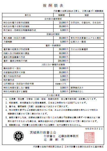| 特別な考案を要しない書類 | 3,000円(A4用紙 1枚程度) |